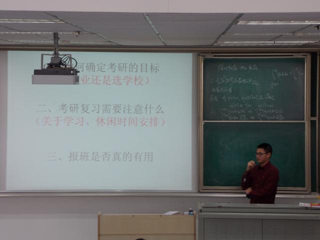 负责考研方面经验分享的陈旭涛、戴若彬和王勃迪依次进行演讲。