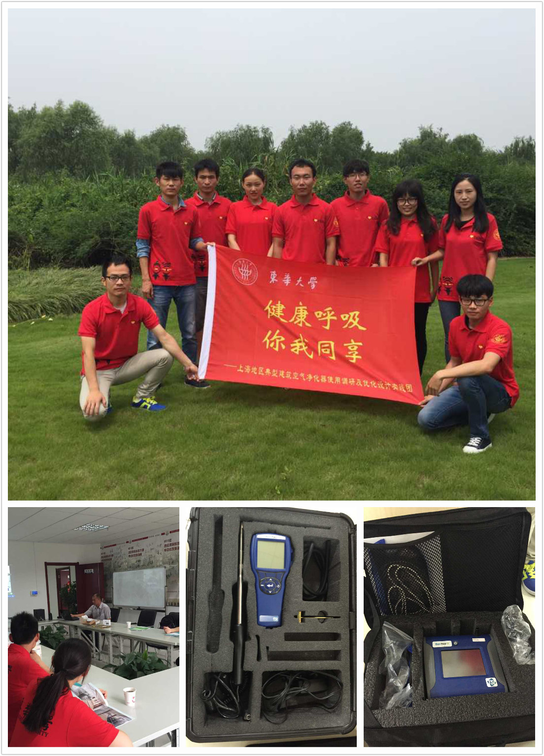 近日,太阳集团环境学院研究生实践团队一行13人赴上海、江苏南京及山东德州等地开展了为期两周的“上海地区典型建筑空气净化器使用调研及优化设计”主题暑期实践活动。实践团队以“健康呼吸,你我同享”为口号,紧密联系我校“创新,我们在行动”暑期社会实践主题,在领域权威沈恒根教授的指导下,就上海地区环境空气质量调研、企业现行空气净化器产品测试分析、典型建筑室内的空气质量评测与优化以及室内空气品质优化的健康宣传四个方面的开展实践,实现产学研用的完美结合。
