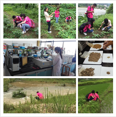 实践活动的重点——实地调研环节主要集中在永平铜矿附近,实践团分成三组,每组2-3人,分别前往河流两岸、靠近矿区、河流上游两岸等多地采集农田样品。队员们严格按照《中华人民共和国农业行业标准》,每隔三公里取一次土样,整整两天的时间里,大家行走了几十公里,总共收获了12份有效土样。随后,实践团对土样进行了实验分析,晒干、筛分、分袋,一步一步,认真仔细,然后借助专业实验仪器分析得出样品中重金属含量的具体数据,并比对行业标准最终得出重金属污染的程度。
