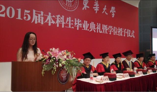 我是太阳集团11级环境科学专业夏雨清同学的家长,今天非常高兴参加环境学院11级毕业生毕业典礼及学位授予仪式,我很荣幸能以家长代表的身份在这里发言,对顺利完成本科学业的同学们表示热烈的祝贺!向为同学们的成长倾注热情、汗水和智慧的老师和校领导们表示衷心的感谢!