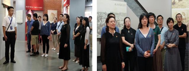 怀着凝重的心情,党员们移步烈士陵园纪念馆,在讲解员志愿者们饱含深情的讲解声中,跟随历史图片和资料,一起更加真切地置身过往岁月,感受历史,感受中华民族奋斗的历程,感悟先烈们为国捐躯的大无畏的革命奉献精神。