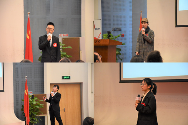 环科1701熊美昱同学从一个英文单词“Greatest”出发,以“E-热情”、“A-自律”、“G-成绩”、“R-科研”、“S-学生会”、“T-旅游/尝试”6个方面向观众展现自己。能环1701王耀锋同学以“风华书生气,天下寰宇心”为主题,分享他的大学经历,讲述他的进博故事。环卓1701江宏宇则在问答环节中,以自身经历阐述了台湾和上海学习习惯的异同,赢得评委好评。环科1701许可欣同学则不同于其他选手,从第三人称以一名侦探的身份从学习、科研、兴趣爱好等方面介绍自己,并在即兴演讲环节通过对中国加入WTO后意义的分析,引经据典,赢得了全场的掌声。环科1701梅言玉同学则以“幸运儿”为主线,在即兴演讲中畅谈“中国精神”,从什么是中国精神到中国精神的继承和发扬,以群众的角度阐述出自己对中国精神的认识。