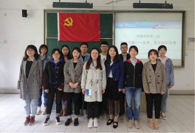 为了学习好、宣传好、贯彻好党的十九大精神,调动培训班学员学习的积极性和主动性,4月27日上午,环境学院党委党校于松1109教室组织开展了第二届“最强大脑”党章党史知识竞赛,环境学院全体入党积极分子组建了六支队伍参加比赛。环境学院学生党建负责人赵晖老师、学生党校负责人解紫茹老师、环境学院18级本科生辅导员史鑫茹老师出席了本次活动。