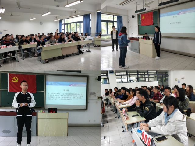 本次竞赛内容涵盖了党的十九大报告、新党章及新形势下党内政治生活的若干准则,分判断题、选择题、心有灵犀与即兴问答四个环节进行。前两个环节重点考察理论知识水平,心有灵犀与即兴问答则围绕改革开放、一带一路、中国梦、习近平新时代中国特色社会主义思想、生态文明等时下热点出题,参赛的入党积极分子发表了对新形势与青年使命感的认识,精彩的发言赢得了阵阵掌声。