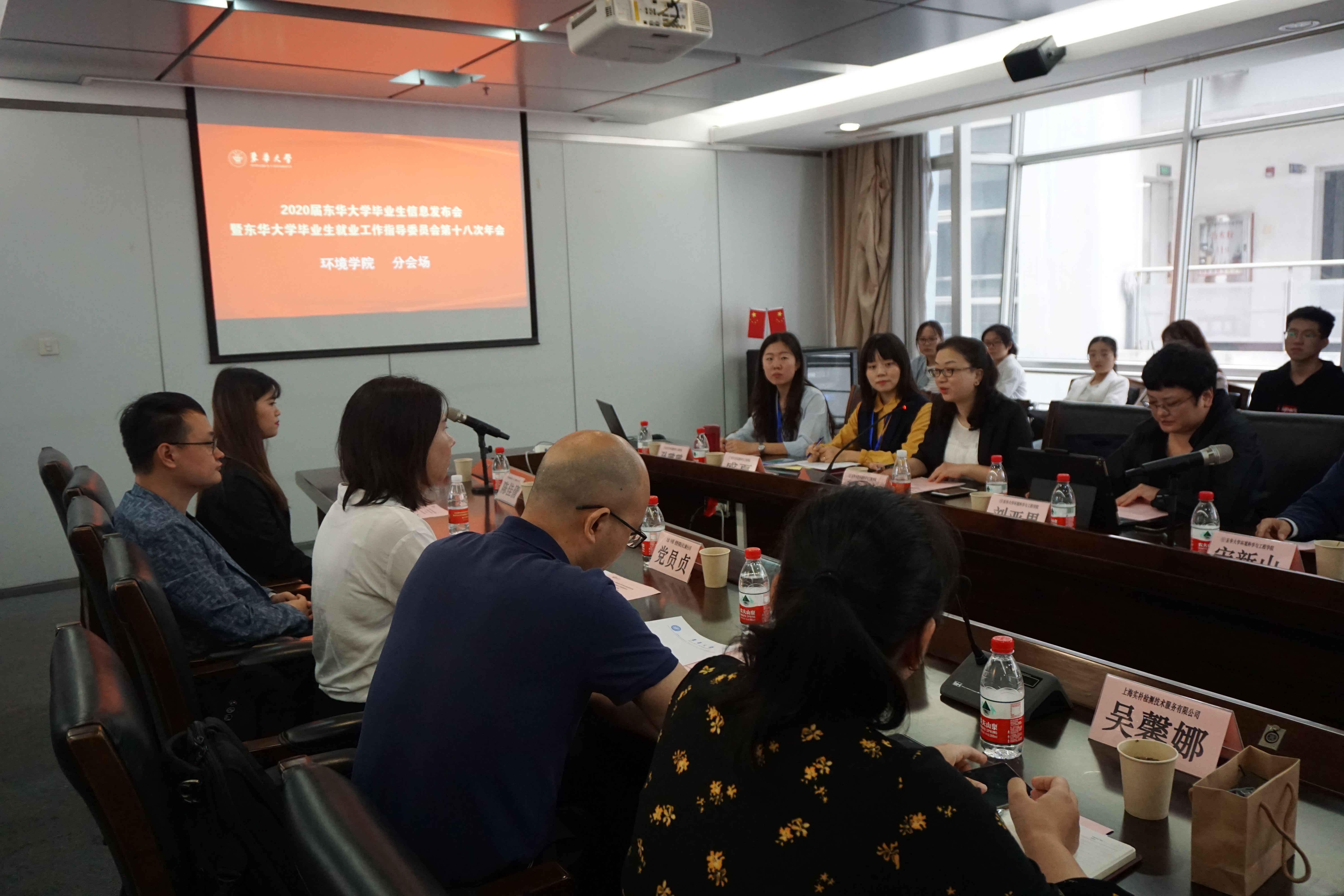 2019年10月9日,太阳集团2020届毕业生就业信息发布会暨太阳集团毕业生就业工作指导委员会第十八次年会太阳集团tyc151cc分会场会议在松江校区第七会议室召开。环境学院院长宋新山,副院长李方、刘亚男,党委副书记马欣,各系主任出席会议,来自大金(中国)投资有限公司上海分公司、上海建工一建集团有限公司等十家企业代表参加会议,学生办公室主任盛夏及本科生就业指导老师孙璐璐与会。会议由党委副书记马欣主持。