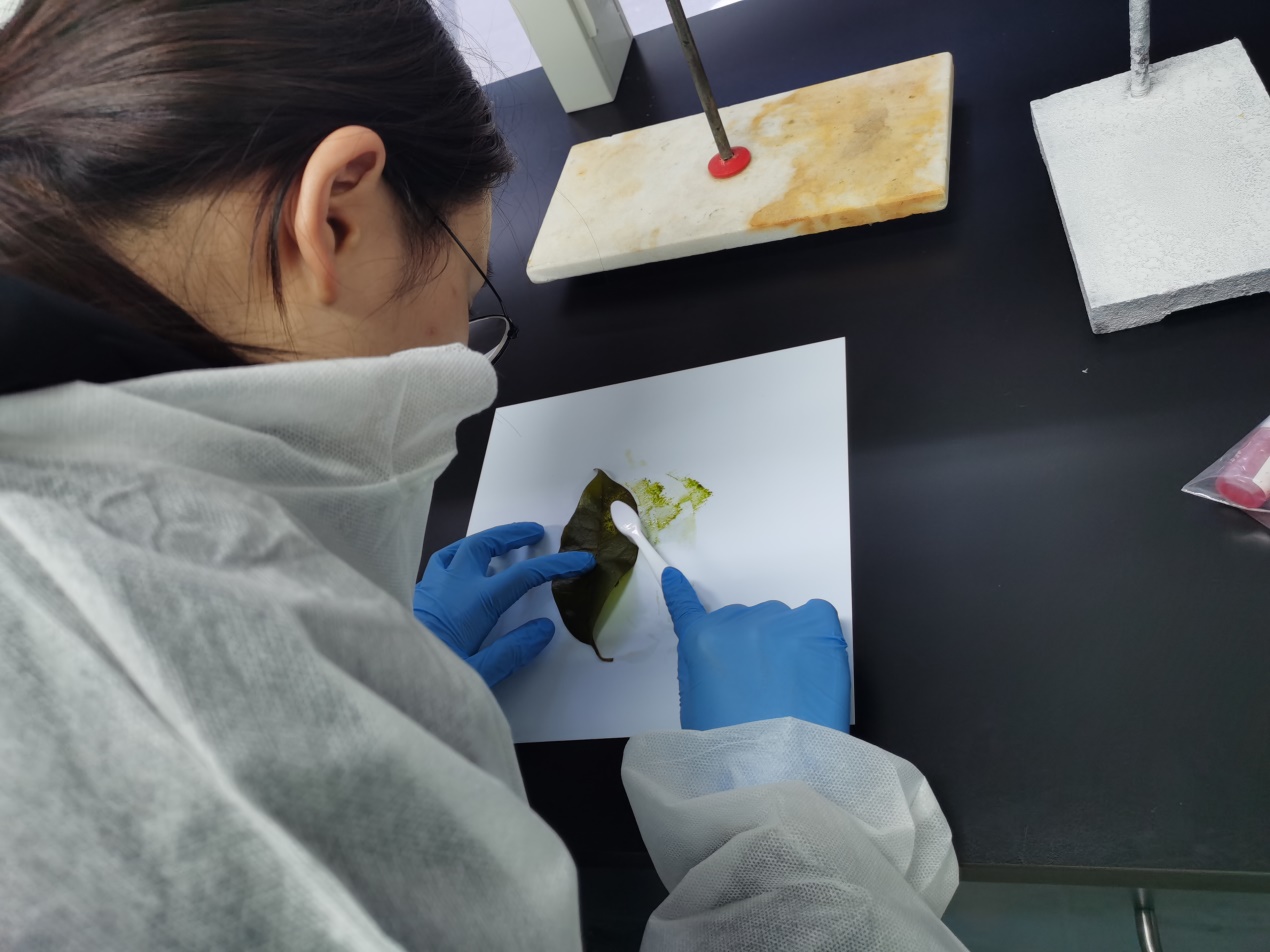 活动开始,由绿手印环教部部员向同学们进行讲解介绍书签制作流程与方法,并明确了实验室安全操作问题。叶脉书签的制作流程从煮沸树叶,刷掉叶肉,再到漂白、染色、风干、装饰热压,最终获得成品,整个流程中,大家都兴致勃勃的参与。不同颜色的染料,不同样式的装饰,相同的对叶脉书签的兴趣,使叶脉书签变得多彩多样,美轮美奂。