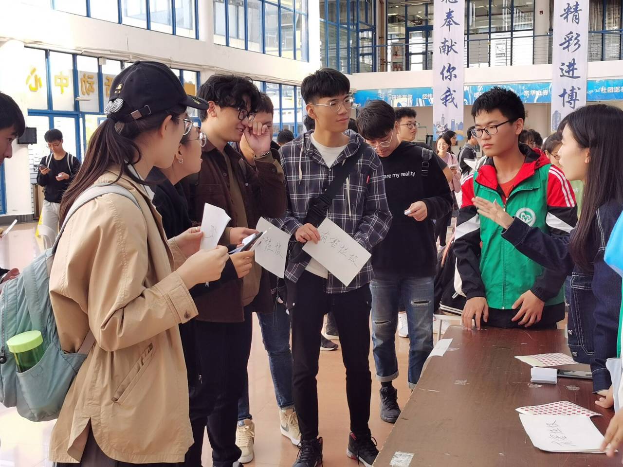 (“吉祥物”志愿者迎接同学们)