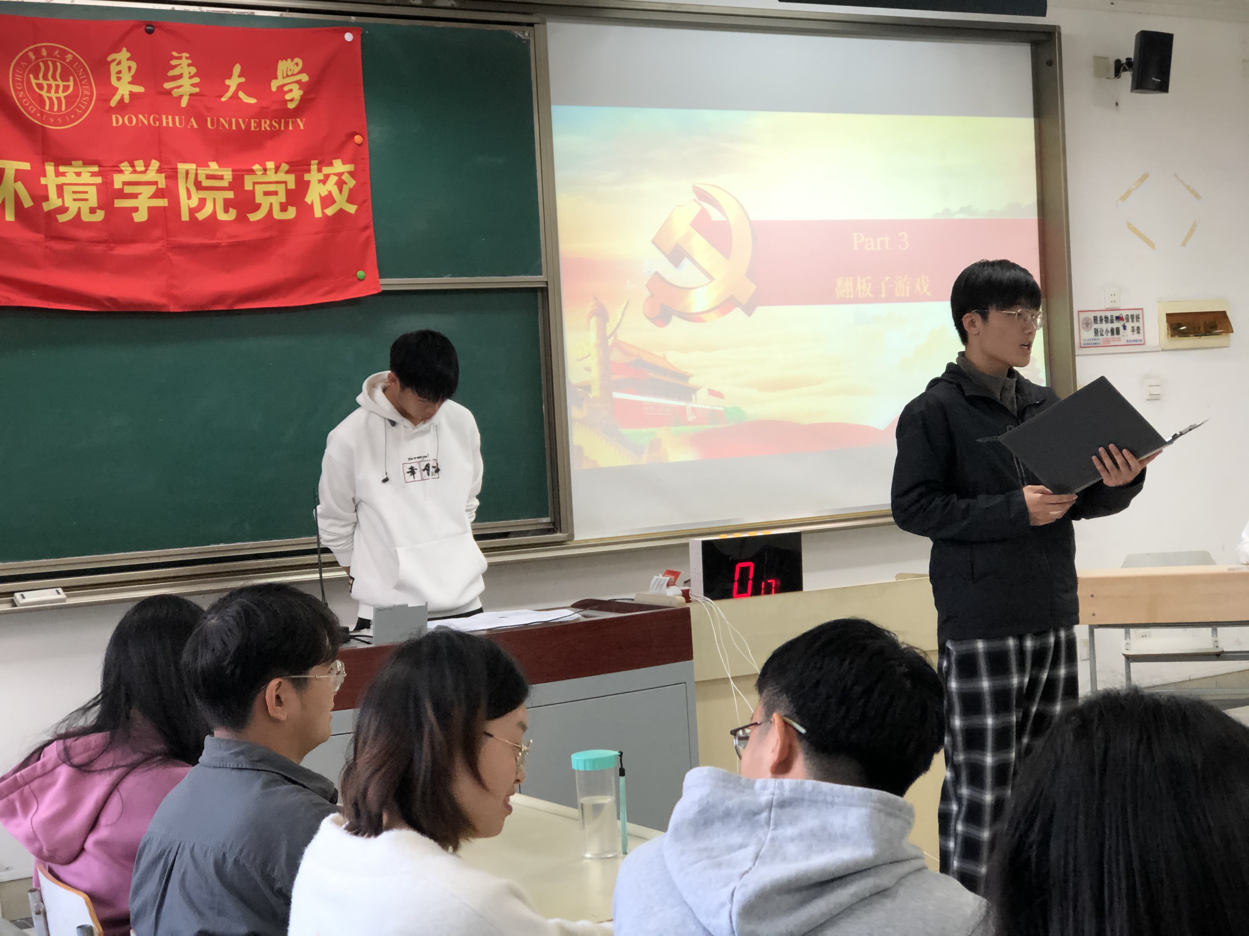 此次知识竞赛涵盖党史、新中国史、改革开放史、社会主义发展史等相关的内容,注重综合考察党员对于四史知识的理解与掌握,分必答题、抢答题、翻板子三个环节。来自环境本科生党支部、暖通学硕党支部、环境学硕党支部及专硕党支部的四支队伍参与了此次比赛。各个队伍都表现活跃,积极答题。经过多轮博弈,本科生党支部拔得头筹,荣获全场第一。