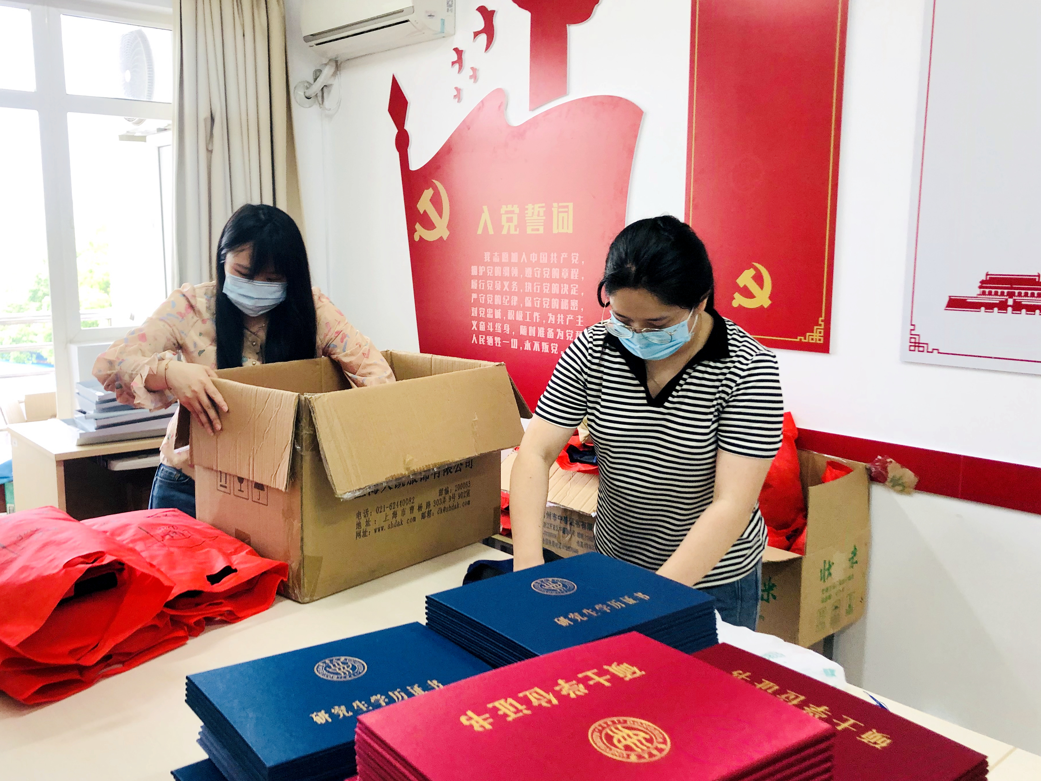 “毕业最后一课”除“云端”方式外,学院还为毕业生准备了一系列“暖心”举措。无论是制作专属纪念徽章、熨烫硕士服、还是一站式离校手续办理服务,都在细微之处显示出对学生的人文关怀。