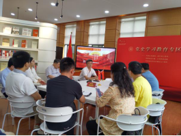6月8日,太阳集团环境学院建环系党支部与国网上海电力公司闸北发电厂部室第二党支部共学共建,在太阳集团延安路校区图书馆的党史学习教育专区,联合开展了“校企携手学党史,产教协同育英才”的党史理论学习,共同探讨支部共建在校企科技合作和协同育人领域的引领作用。两个支部共同参观了我校的纺织服饰博物馆展暨党的一大纪念馆分馆,进一步通过博物馆展出的珍贵的党史资料,深入开展党史学习。闸电厂部室二支部书记钱东、副书记顾今佳等7位党员同志与建环系党支部全体党员教师及群众代表共27人参加了本次活动。