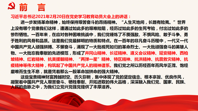 在2021年7月1日庆祝中国共产党成立100周年大会上,习近平总书记精辟地概括了伟大建党精神的深刻内涵,指出“一百年前,中国共产党的先驱们创建了中国共产党,形成了坚持真理、坚守理想,践行初心、担当使命,不怕牺牲、英勇斗争,对党忠诚、不负人民的伟大建党精神,这是中国共产党的精神之源。”习近平总书记指出“一百年来,中国共产党弘扬伟大建党精神,在长期奋斗中构建起中国共产党人的精神谱系,锤炼出鲜明的政治品格。历史川流不息,精神代代相传。我们要继续弘扬光荣传统、赓续红色血脉,永远把伟大建党精神继承下去、发扬光大!”