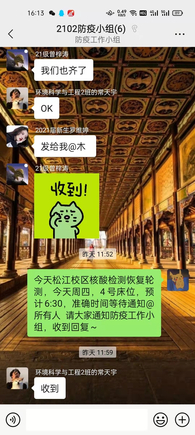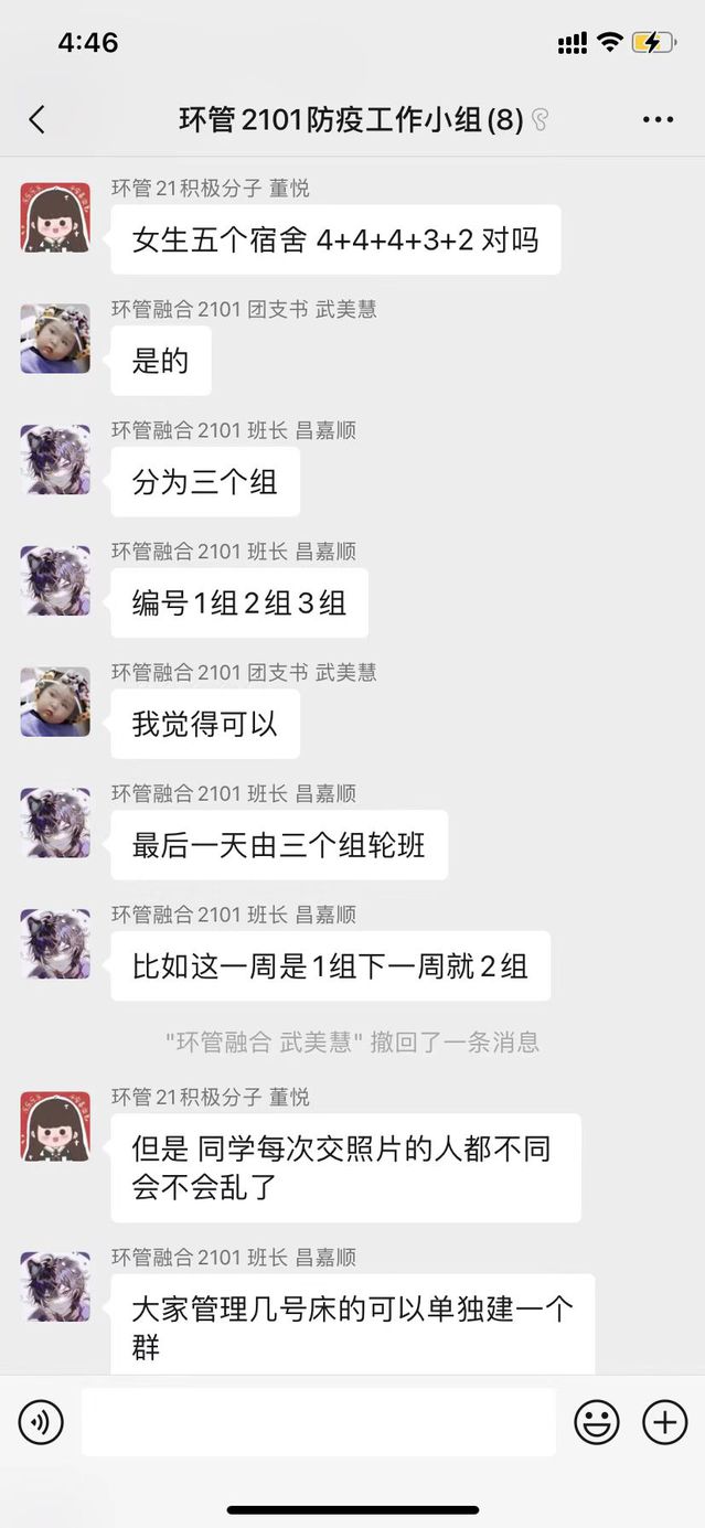 疫情面前没有人可以置身事外,唯有各司其职、各尽其力,才能打赢这场防疫狙击战。支部党员解紫茹作为专职辅导员,将中心工作与支部党建工作结合,根据在校学生实际情况,科学合理分工,成立防疫工作小组,形成辅导员-班级骨干-入党积极分子三个层面的疫情防控排查体系,高效完成学生的核酸检测通知、提醒、汇总、收取截图等相关工作,进一步提高入党积极分子的政治站位,深化思想认识,强化责任担当,扎实做好党员日常培养与教育工作。