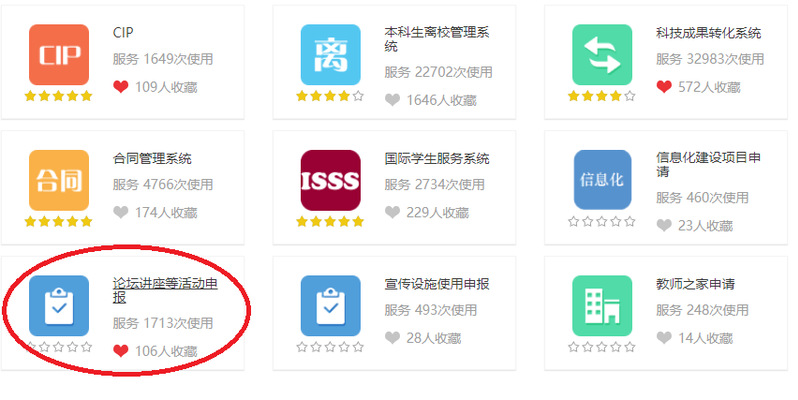 1、进信息门户【论坛讲座等活动申报(需登录)】系统。(←点击左侧链接可以直接跳转)