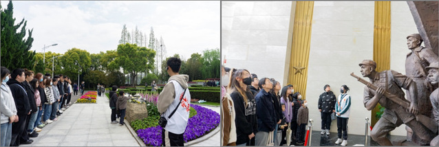 在烈士陵园刻有“死难烈士万岁”的纪念碑下,伴随着国歌《义勇军进行曲》的响起,纪念英烈的仪式正式开始。全体成员肃立在烈士陵园纪念碑前向革命先烈们默哀致敬,敬献花蓝。紧接着,党员同志们在纪纪念碑前重温入党誓词。纪念碑后面,青翠的灌木丛间安放着烈士们的墓碑。墓碑前是刻有红漆字“忠魂”的卧石。大家一齐在碑前向烈士墓鞠躬并敬献鲜花。同学们感言:“没有烈士们为革命奋斗,就没有我们今日的和平生活。烈士永垂不朽,他们必将被历史铭记”。