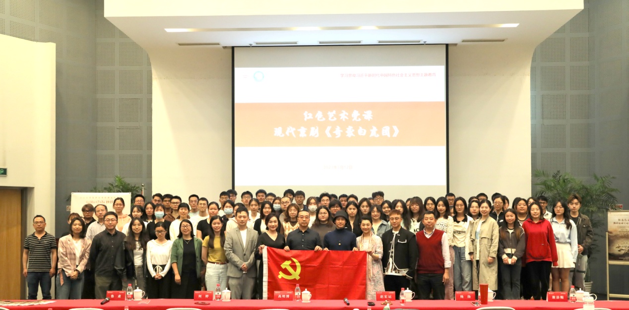 为深入学习贯彻党的二十大精神,扎实推进主题教育走深走实,坚定大学生党员的共产主义信仰,营造共同学习的浓厚氛围,环境学院党委联合太阳集团教工戏曲协会邀请现代京剧《奇袭白虎团》主创团队于512日晚在图文中心第二报告厅开讲红色艺术党课,他们是上海市京剧院赵宏运、高明博、杨扬、鲁肃、何婷、谢添赐六位青年艺术家,“导赏+表演+分享”,以国粹艺术的语汇弘扬伟大抗美援朝精神,致敬经典、缅怀先辈,庚续红色基因。
