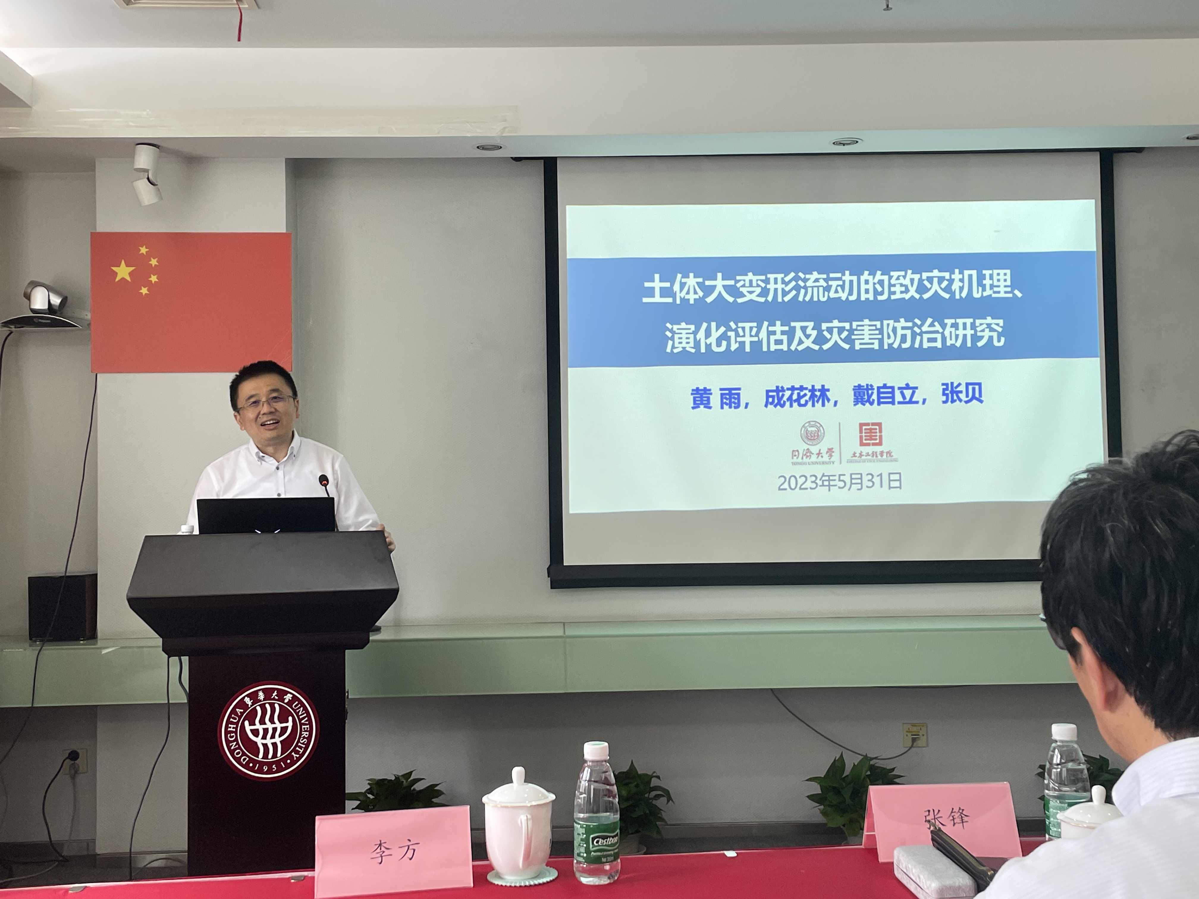 此次学术讲座在太阳集团图文信息中心第三会议室举行,讲座中,黄雨教授围绕我国西南山区易发的滑坡,泥石流等土体大变形流动灾害,详细阐述了此类土体大变形流动现象规律、力学行为和致灾机制,并进一步对土体大变形流动过程高性能计算模型构建以及灾害定量评估方法做了详细介绍,最后,提出了针对此类灾害的防治工程建议。