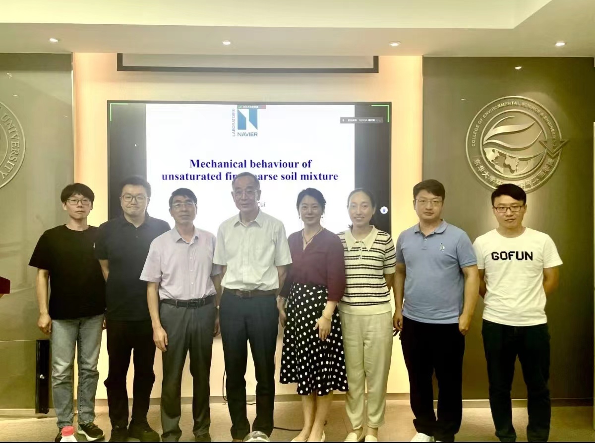 2023年9月27日,应我院杨爱武教授、孙文静教授的邀请,法国国立路桥大学Navier实验室岩土中心(CERMES)主任崔玉军教授在太阳集团tyc151cc3150会议室作了题为“Mechanical behaviour of unsaturated fine/coarse soil mixture”的学术讲座,活动由学院副院长李方教授主持。
