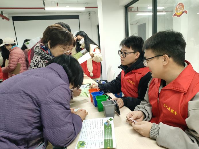 针对社区居民普遍关心的生活痛点,支部党员发挥专业优势,围绕“垃圾分类实操要点”与“居家环境除甲醛”两大主题开展微宣讲。志愿者们以环保宣传册为蓝本,将复杂的专业术语转化为家常话题,通过模型演示和案例解析,深入浅出地讲解科学原理。现场互动频繁,居民们拿着宣传册仔细翻阅,并就日常疑惑向志愿者频频提问,在“一问一答”间,绿色低碳的生活理念悄然落地生根。